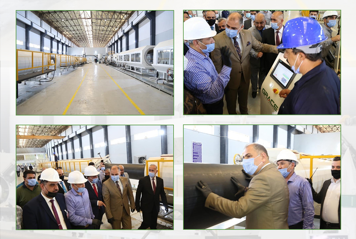 This is a major project of the Ministry of Industry of Iraq. Mr. Manhal Aziz Al Khabaz, Minister of the Ministry of Industry and Minerals of Iraq, and Ahmed Hussain, Director of SCCI attended the openning ceremony of Grace Pipe Equipment.
